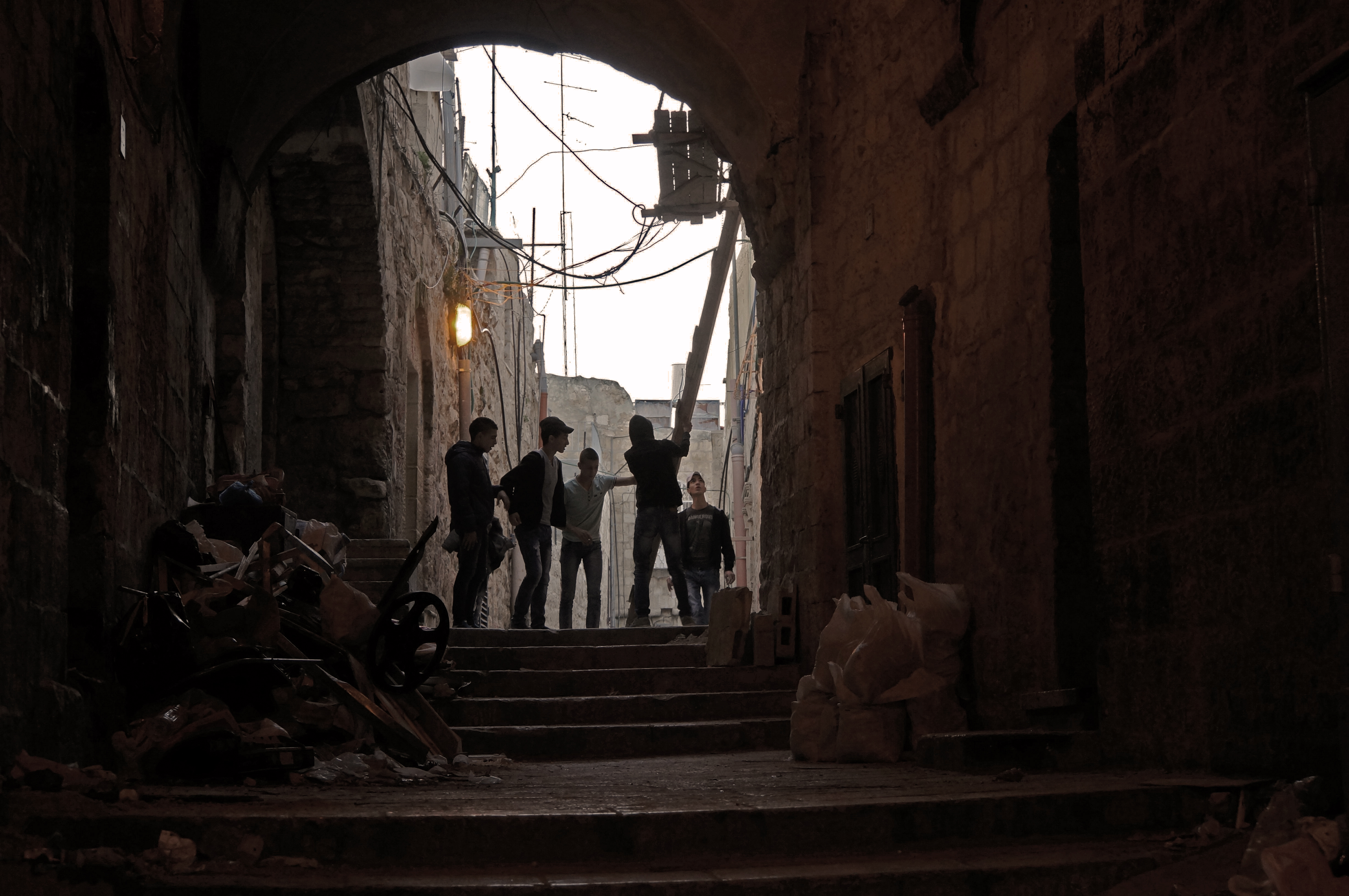 Eine Gruppe Knaben in der jerusalemer Altstadt, die im Winter fast menschenleer ist. Zumindest im Vergleich zur Touristensaison.