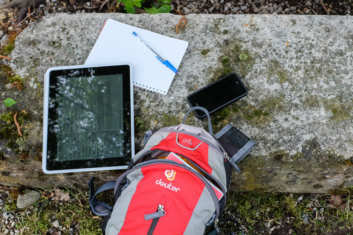 Dank Tablet und Handy kann man auch mit kleinem Gepäck auf dem Rad erreichbar bleiben. Ob das nötig ist? Nicht immer, aber leider an Feiertagen die man nur hier kennt. Sehen wir es positiv: Besser an einem Ferientag eine halbe Stunde im Büro, als an einem Arbeitstag eine halbe Stunde auf dem Rad – zumindest was die Kondition betrifft.