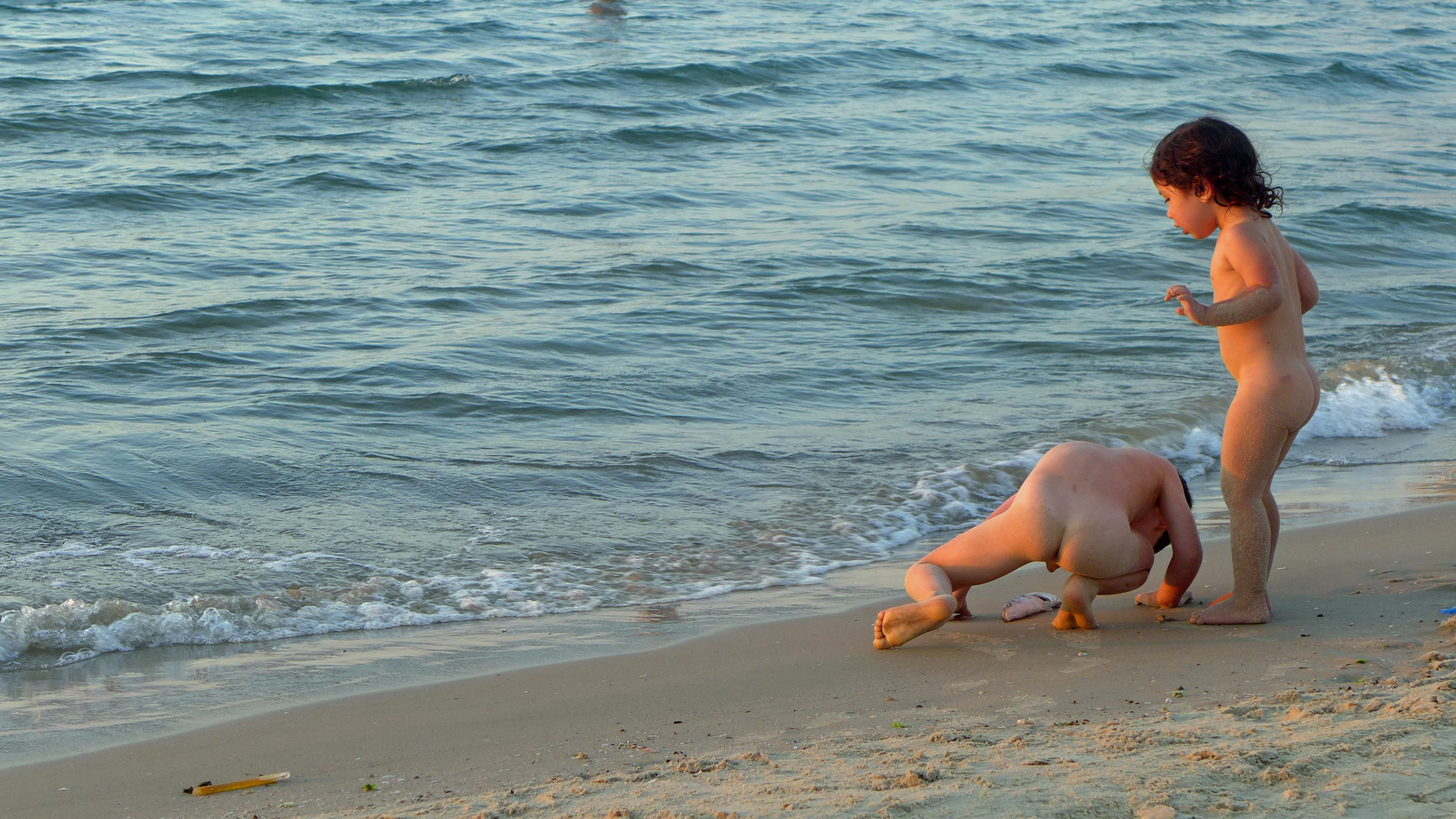 Diese beiden haben einen toten Fisch entdeckt – das Meer hat ihn bei Mezizim an Land gespült, dem „locals beach“ neben dem Alten Hafen.