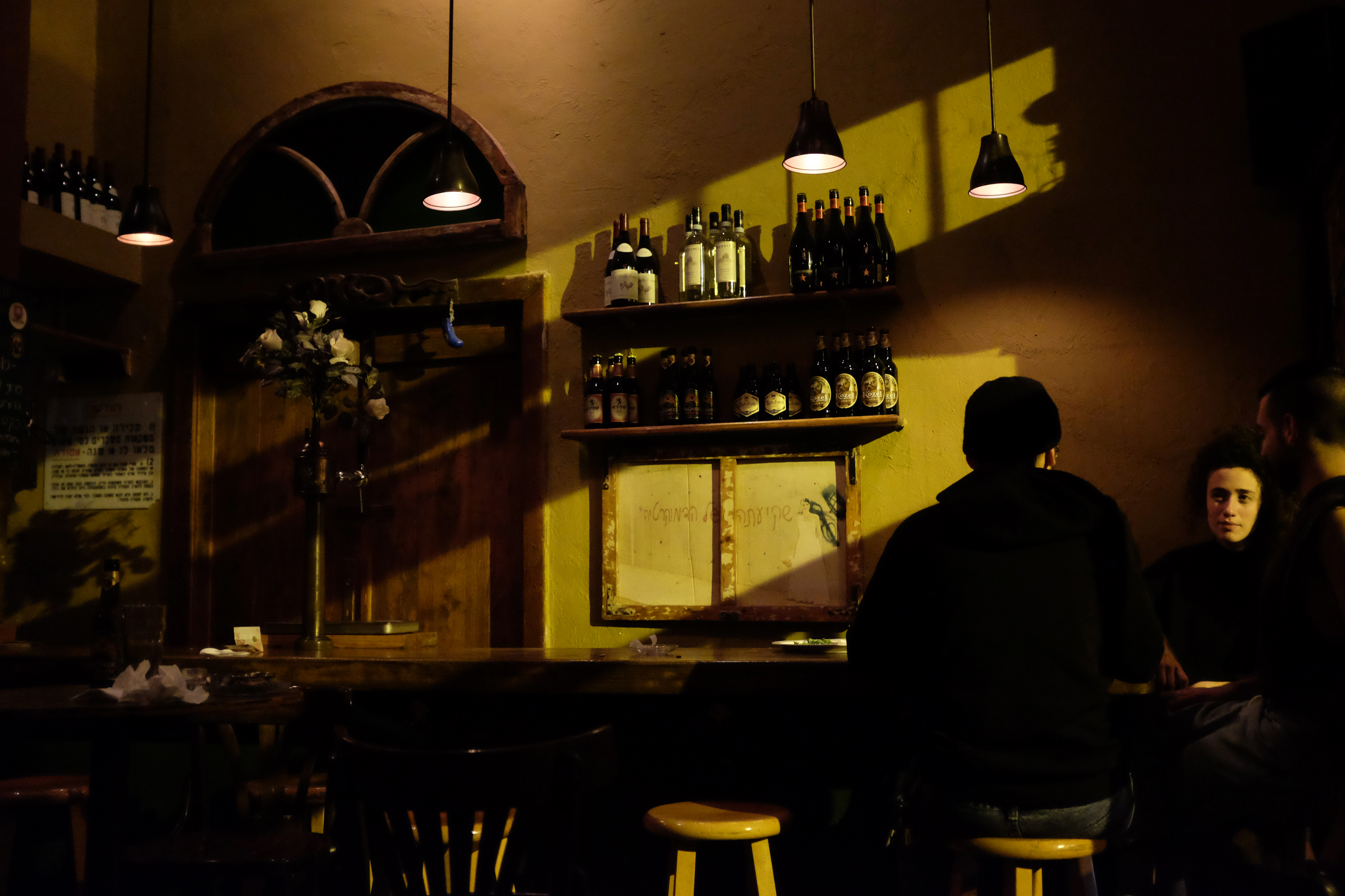 An diesem Abend hatten wir uns verkleidet, als wären wir in den 1920ern; es war kalt und in der Bar, wo wir hingewollt hatten, gab es keinen Platz. Die Bäuche voller Geburtstagskuchen (das war der freudige Anlass nämlich) spazierten wir durch regennasse Strassen bis zum Marktquartier, wo wir uns in dieser Bar einnisteten, Wein tranken und Pizza teilten.